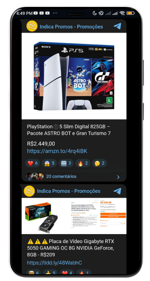 Monitoramos lojas confiáveis e publicamos, em tempo real, promoções, bugs e cupons exclusivos nos nossos grupos.